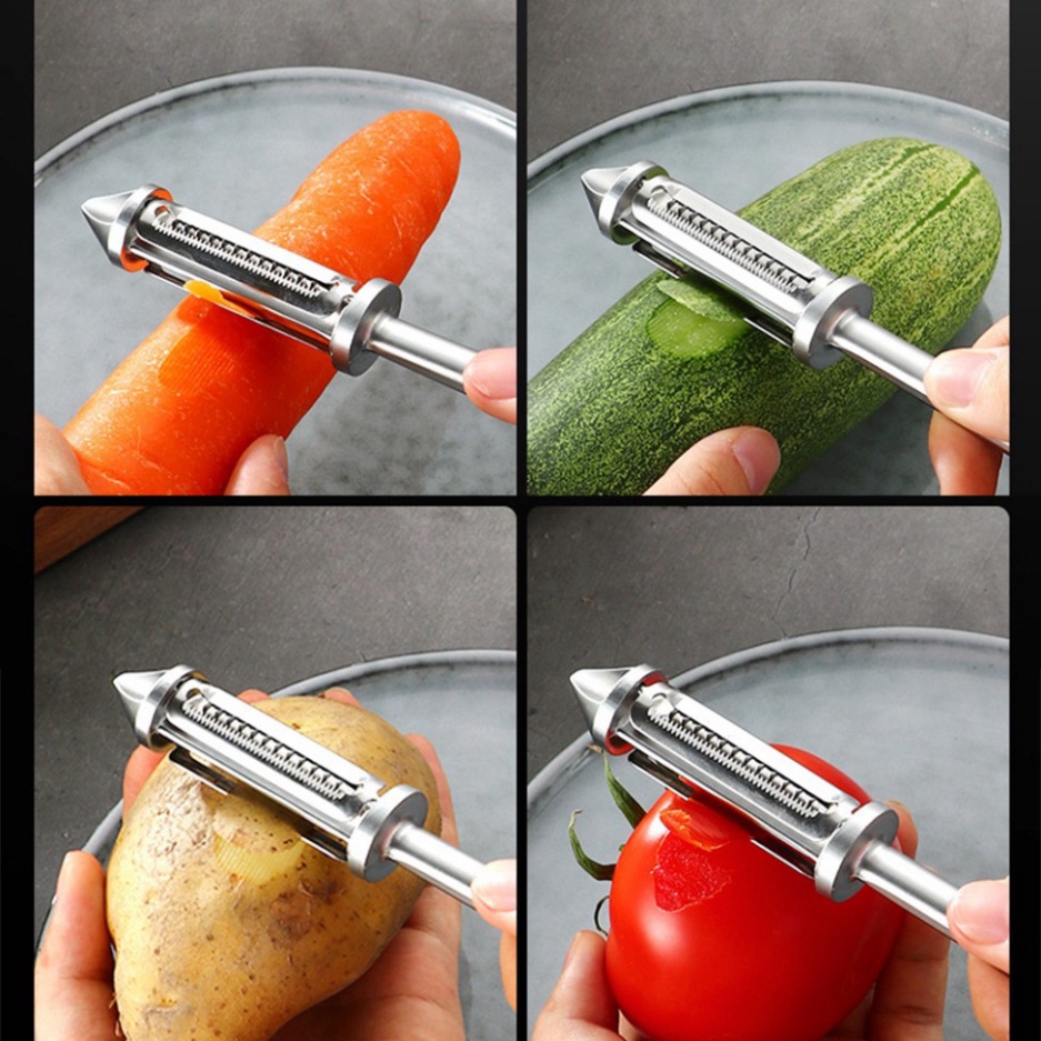 Giới thiệu Nạo rau củ quả inox đa năng 4 in 1 [CAO CẤP] Nạo vỏ bào sợi khoét vỏ đa năng dễ dàng tiện lợi HOT