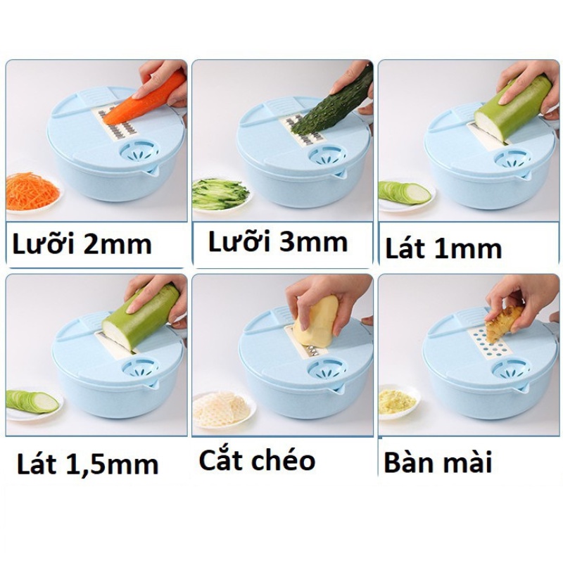 Với 11 chức năng: Thau, rổ, nghiền gừng tỏi, lược trứng, thái lát, bào sợi to nhỏ, bào khoanh.