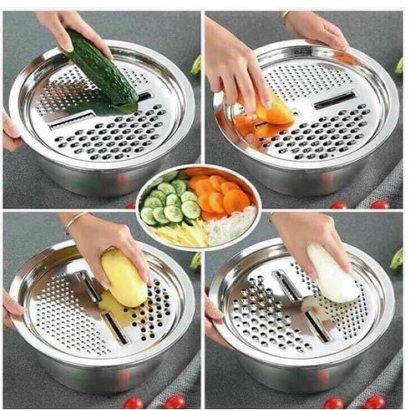 Nhà cửa & Đời sống > Dụng cụ nhà bếp > Bàn nạo, dụng cụ bào, cắt || Bộ nạo rau củ quả THAU,NẠO , Rổ inox 3 trong 1 siêu tiệnCòn hàng