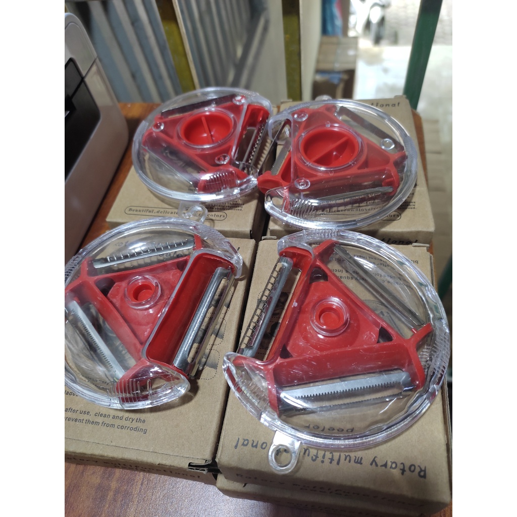 ✯ Nạo gọt rau củ quả được thiết kế thông minh, hình tròn, có nút xoay. Khi đang nạo vỏ, muốn chuyển sang bào sợi bạn chỉ cần xoay nút vặn, rất tiện dụng. Có 3 chế độ gọt cho bạn. Ngoài ra, hai bên có nút nhỏ để nạo mắt khoai tây.
