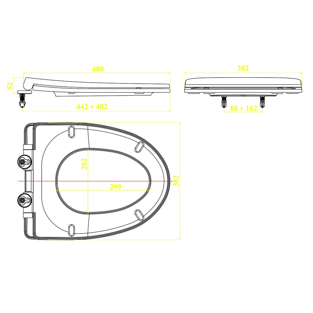 >>Kích thước giữa 2 ốc chốt: 8.8 - 16.2cm (dùng thước kiểm tra khoảng cách 2 lỗ ốc của bàn cầu)