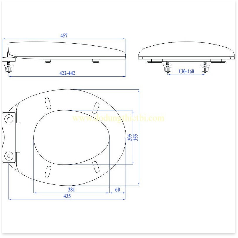 Sản phẩm bao gồm: 1 nắp đậy, 1 vành ngồi, bộ ốc chốt đầy đủ