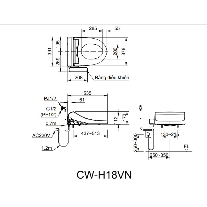 Thông tin chi tiết nắp bàn cầu Shower toilet CW-H18VN