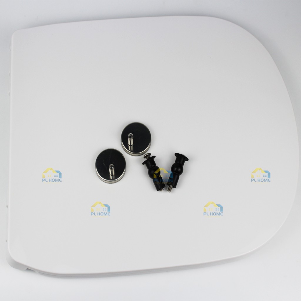 Nắp bồn cầu đóng êm phù hợp bồn cầu kiểu nắp vuông, chất liệu nhựa trắng dày, phụ kiện chân ốc đầy đủ