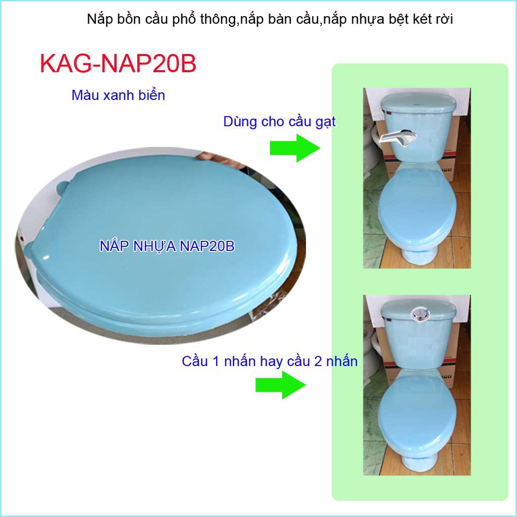 Giới thiệu Nắp bàn cầu phổ thông KAG-NAP20B, nắp đậy bồn cầu 2 khối Xanh Biển