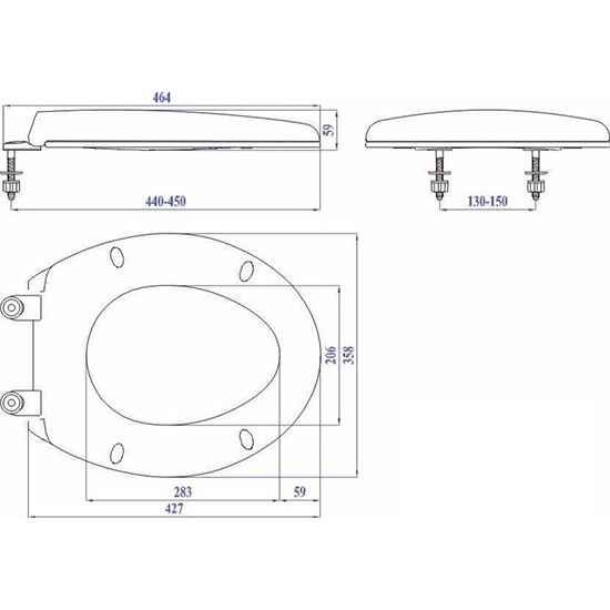 Kích thước: chiều dài 43cm, chiều rộng 36cm, khoảng cách giữa 2 lỗ chốt: 130 - 150cm