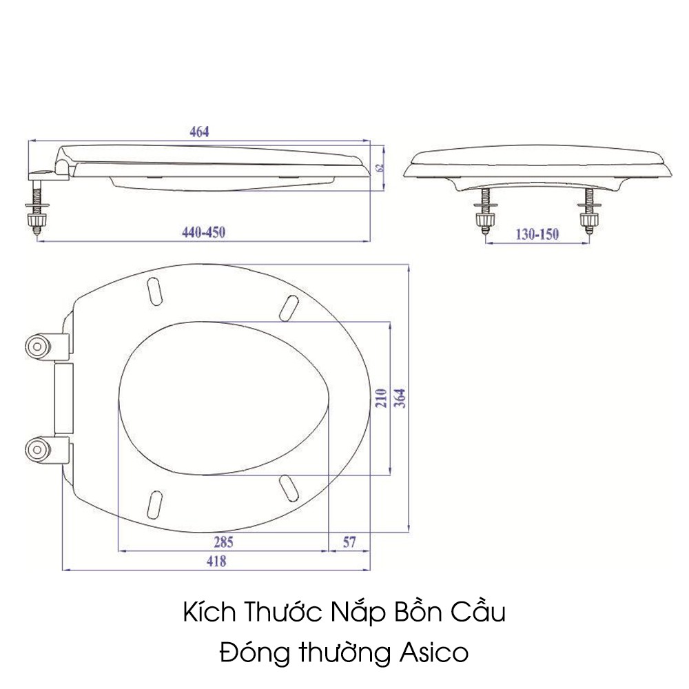 Nhà cửa & Đời sống > Đồ dùng phòng tắm > Bồn cầu, ghế và nắp bồn cầu || Nắp bồn cầu nhựa Asico- 02 KOSKO (Tặng bộ chân đế) - (Thông Số Kích Thước Trong Ảnh)Còn hàng