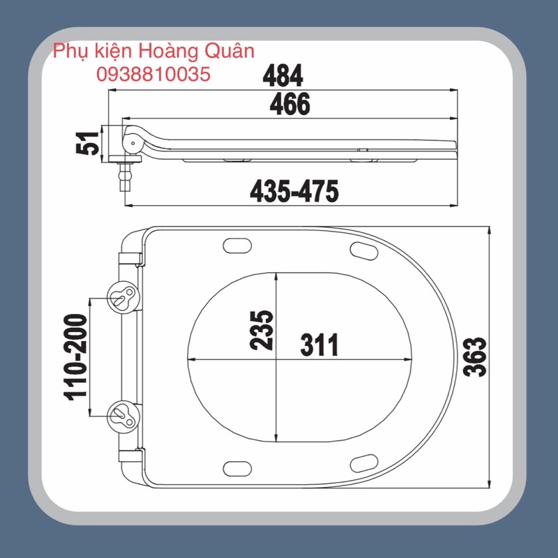 - Khoảng cách hai chốt nắp có thể điều chỉnh độ rộng từ 110mm đến 200 mm