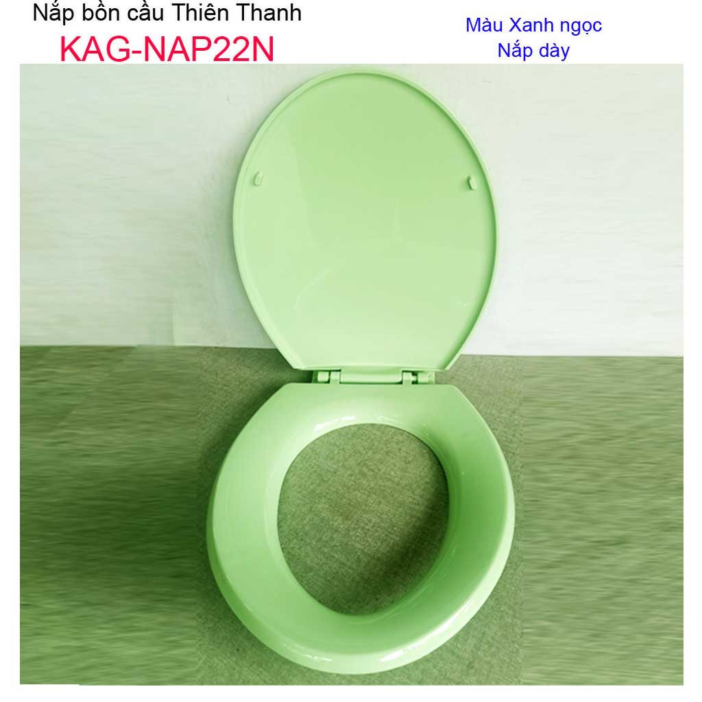 Nắp bồn cầu Thiên Thanh màu xanh ngọc KAG-NAP22NChất liệu: Nắp bồn cầu Thiên Thanh màu xanh ngọc KAG-NAP22N được làm từ nhựa ABS màu xanh biển có độ đàn hồi cao, khó bể vỡ, khó ngả màu trong quá trình sử dụng