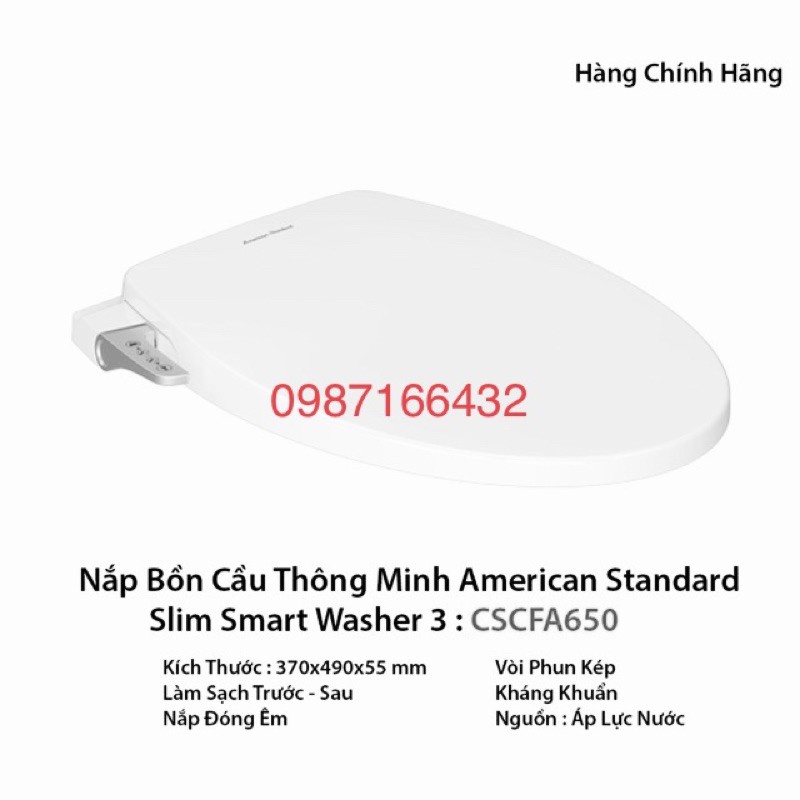Nhà cửa & Đời sống > Đồ dùng phòng tắm > Bồn cầu, ghế và nắp bồn cầu || Nắp bồn cầu thông minh American Slim Smart Washer 3-CSCFA650Còn hàng