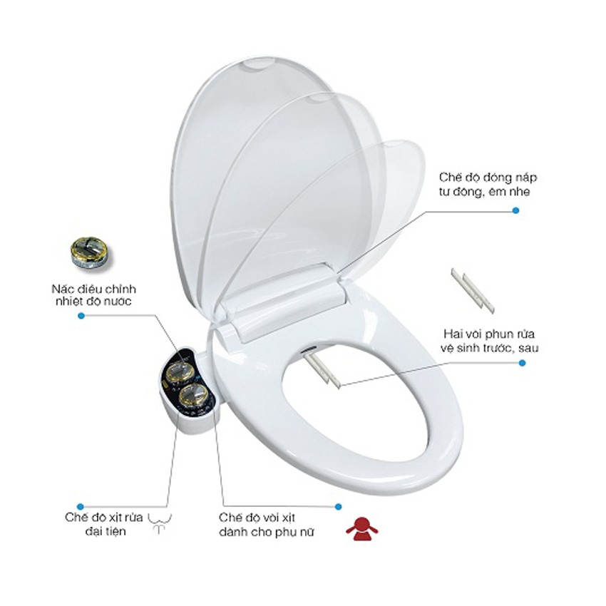 Nhà Cửa & Đời Sống > Đồ dùng phòng tắm > Phụ kiện nhà tắm, nhà vệ sinh || Nắp bồn cầu thông minh Luva Bidet LB-204 - 2 chế độ rửa, nóng - lạnhCòn hàng