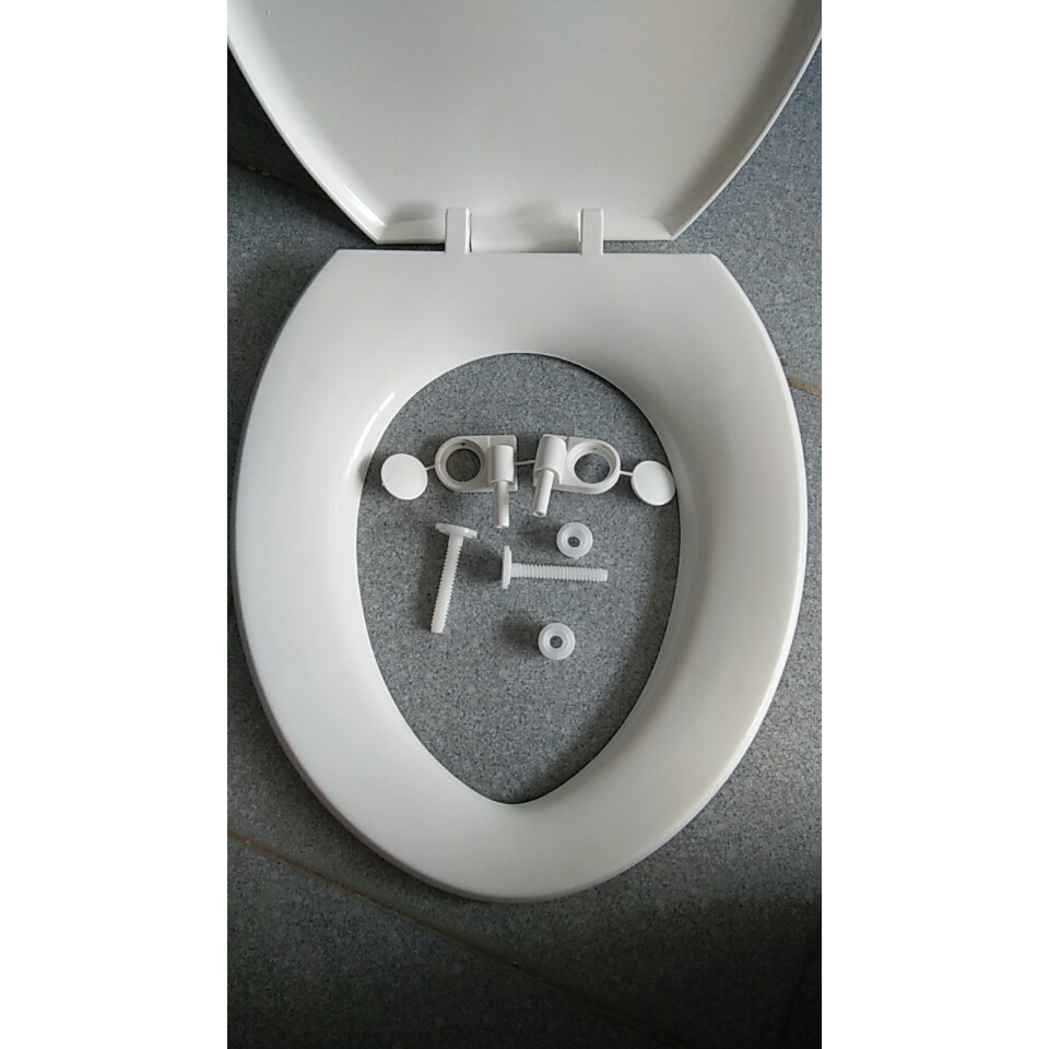 - Sản phẩm bao gồm: nắp bồn cầu và ốc vặn vào bồn cầu bằng nhựa
