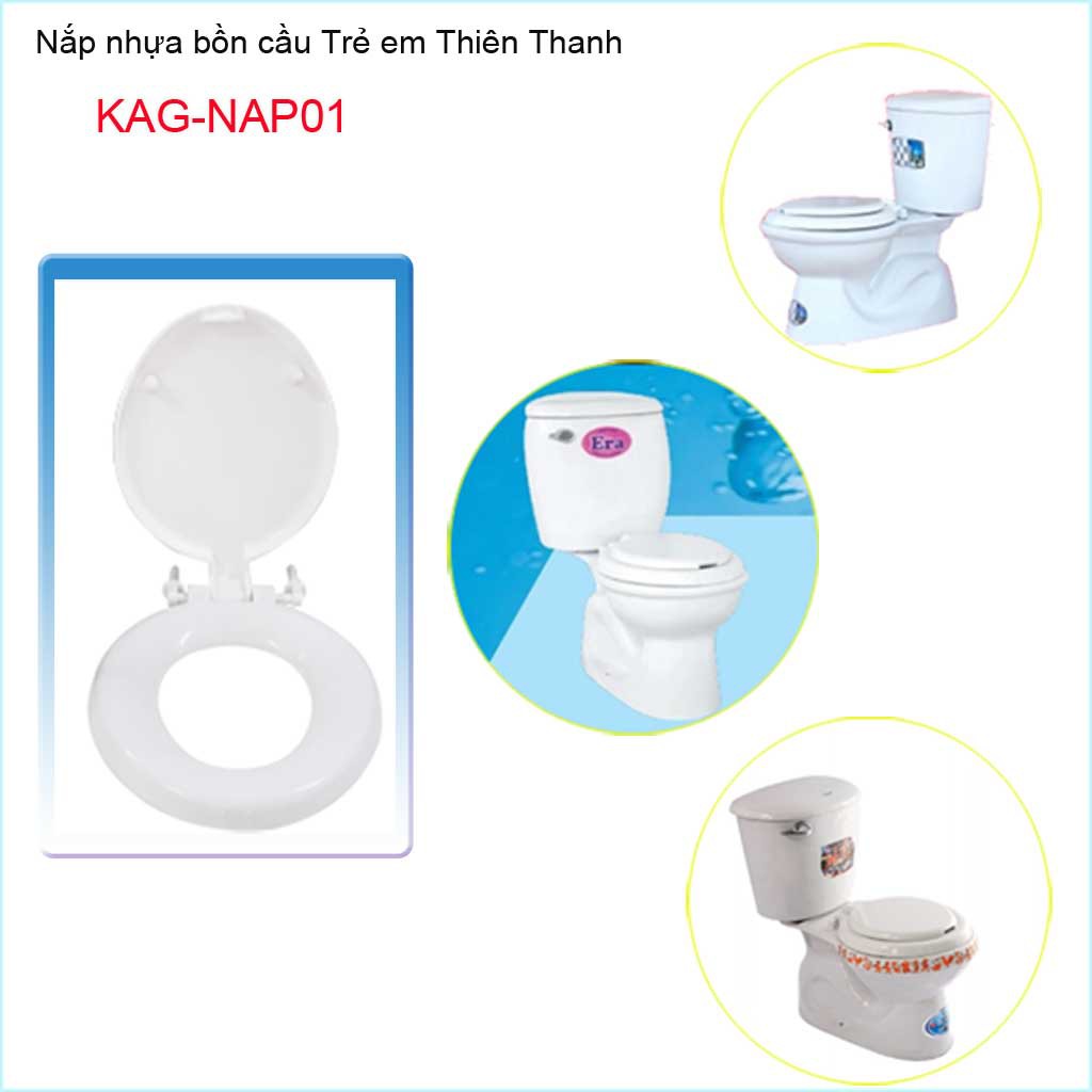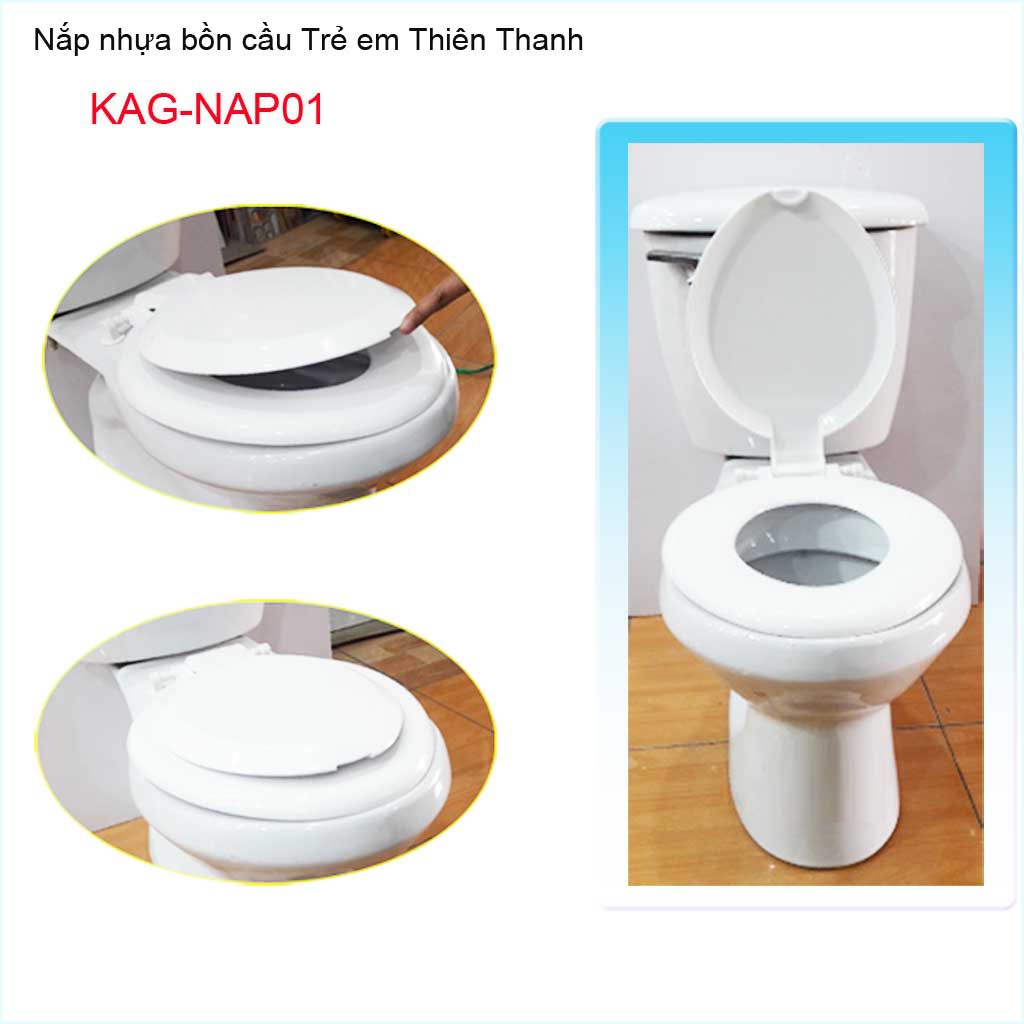 Nắp bồn cầu trẻ em, nắp đậy bồn cầu trường mẫu giáo KAG-NAP01 có thể thay thế cho bệt két rời trẻ em, bồn cầu 2 khối trong nhà trẻ, trường mẫu giáo các hãng như :Bồn cầu trẻ em Dolacera, Bồn cầu trẻ em Thiên Thanh Era,Bồn cầu trẻ em Viglacera,Bồn cầu trẻ em Caesar CT1026, Bồn cầu trẻ em HC, Bồn cầu trẻ em Tasoco, Bồn cầu trẻ em Vina, Bồn cầu trẻ em Vimis...