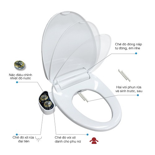 Thiết bị 2 vòi rửa vệ sinh / 1 chế độ rửa hậu môn / 1 chế độ rửa phụ nữ / Bao gồm cả nắp bồn cầu / Có nước nóng lạnh / Điều chỉnh áp lực / Tự rửa vòi phun
