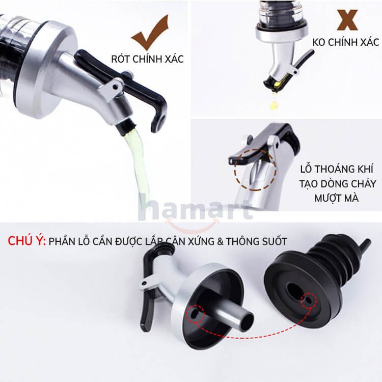 - Công Dụng : vòi chiết và nắp đậy cho Chai dầu, Lọ, Bình đựng dầu ăn, giấm, nước tương, nước mắm, gia vị, thiết kế phần miệng chiết rót rất tinh tế và tiện lợi. giúp bạn nêm nếm chính xác một lượng cần thiết , một trong những dụng cụ nhà bếp rất cần thiết.