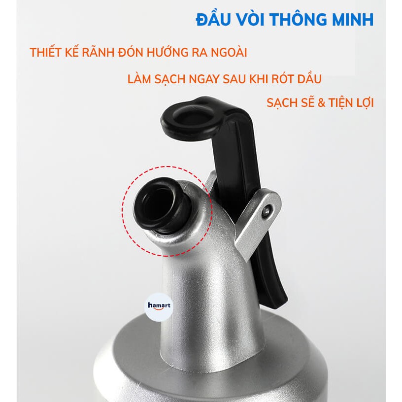 - Đầu vòi thiết kế dễ rót, lỗ thông khí hỗ trợ rót dầu mượt mà & dễ dàng