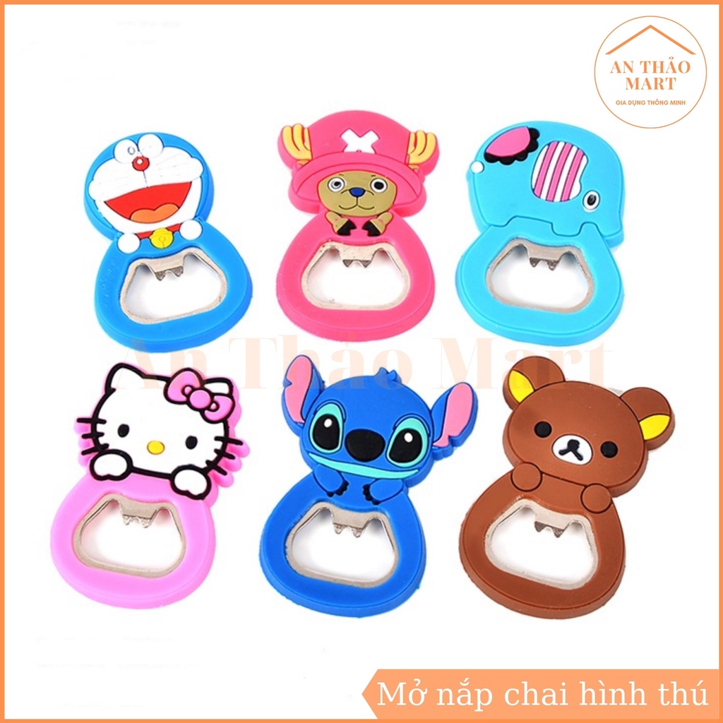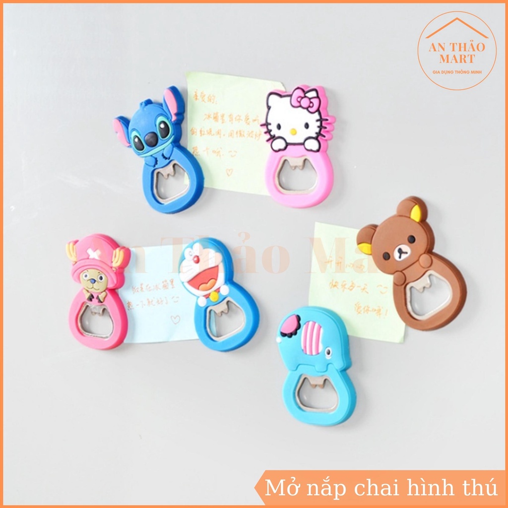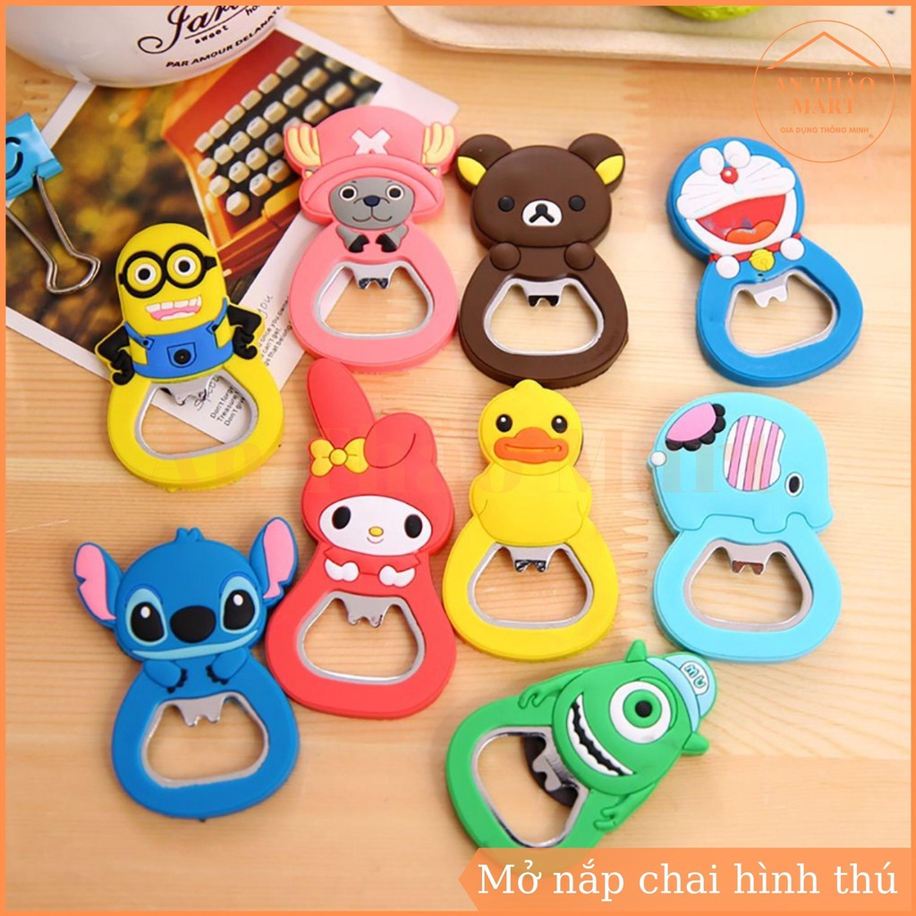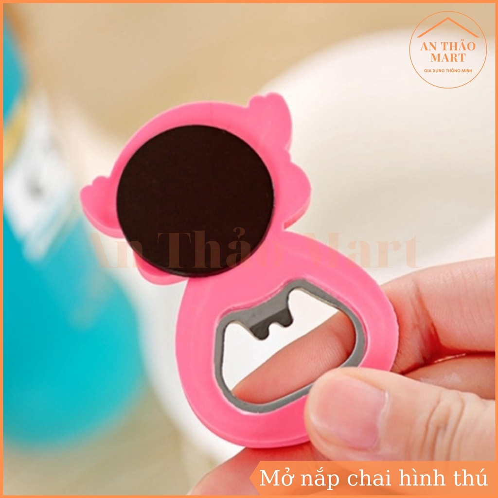 Mở Nắp Chai Hình Thú, Dụng Cụ Mở Nắp Chai Bia Nước Ngọt Bằng Inox Bọc Silicon Đính Nam Châm Tiện Lợi