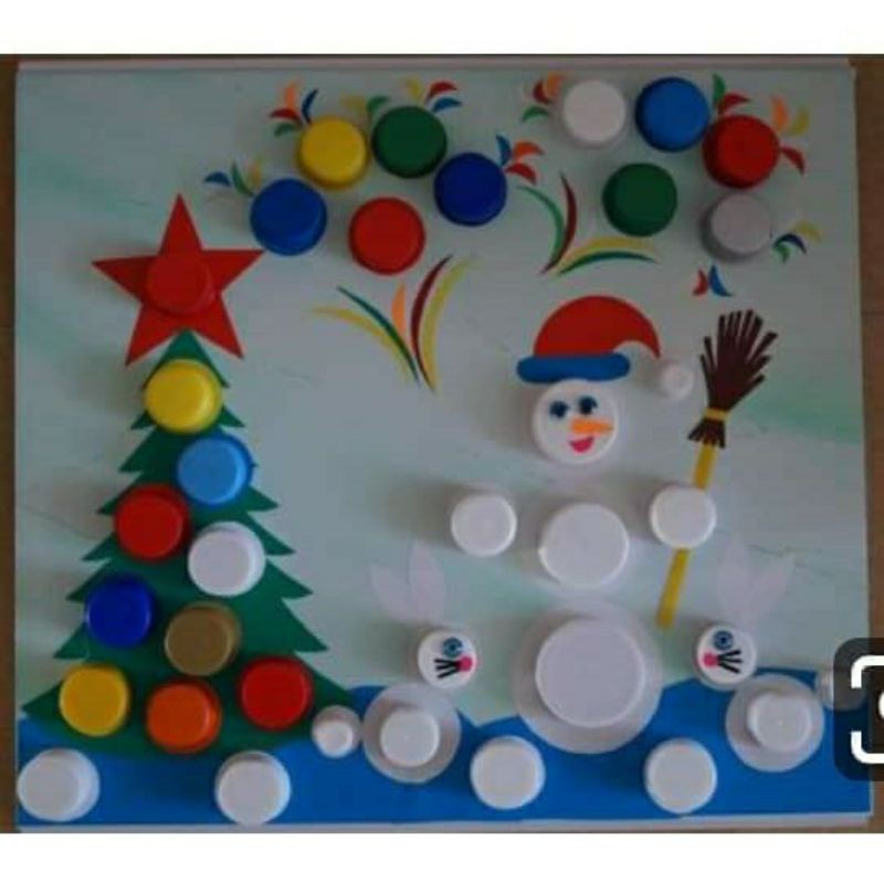 Nắp chai màu đủ màu sử dụng làm đồ chơi mầm non. Thiết kế đồ dùng dạy học cho trẻ.