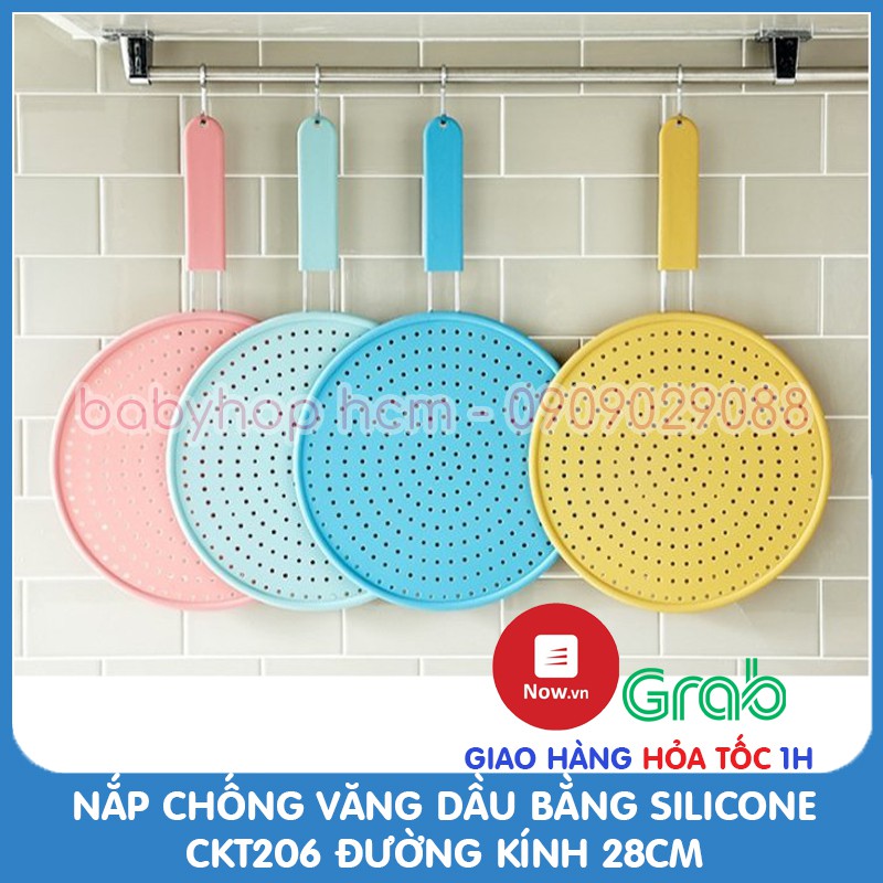 - Chống bắn dầu mỡ, làm ráo thực phẩm : Nắp chống văng dầu Lock&Lock bằng Silicone 28cm CKT206 giúp chống bắn dầu mỡ khi chiên, rán và xào các loại thực phẩm, cá, thịt, khoai tây.