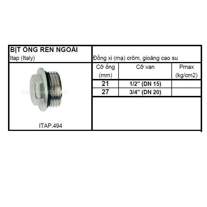 Giới thiệu Nắp chụp ống (bịt ống) Italy ren ngoài art.494