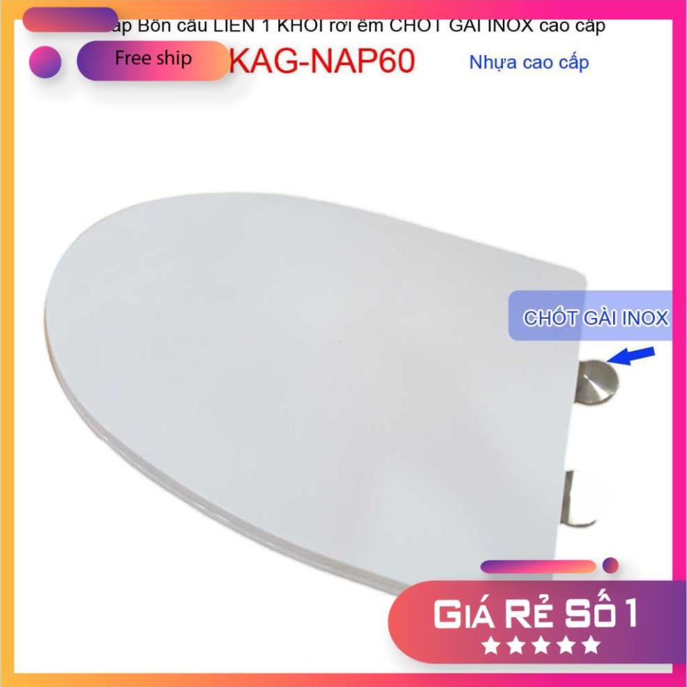 Nắp đậy bồn cầu 1 khối rơi êm chốt gài Inox, nắp bồn cầu khối KAG-NAP60 được làm từ nhựa ABS cứng màu trắng, nắp rơi êm khó bể vỡ, khó ngả màu trong quá trình sử dụng.
