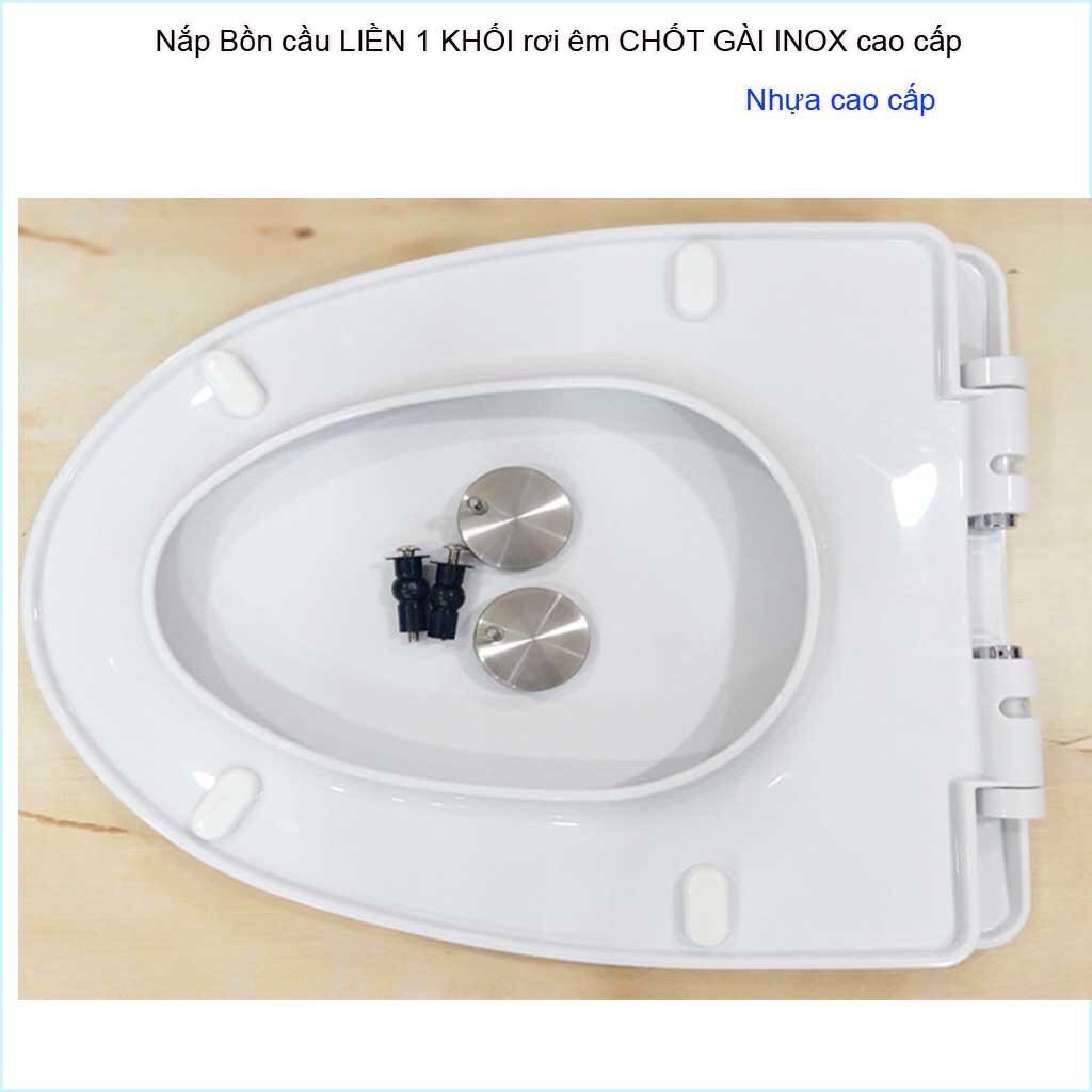 Tư vấn vui lòng liên hệ số ĐT/ZALO. 0986586043Nắp đậy bồn cầu 1 khối rơi êm chốt gài Inox , nắp bồn cầu khối