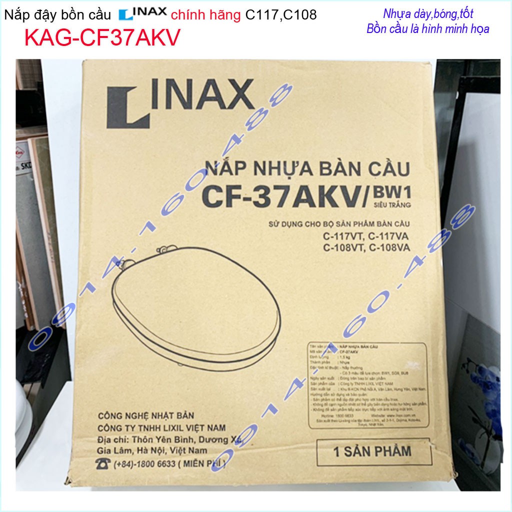 Nắp đậy bồn cầu Inax chính hãng KAG-CF37AKV, nắp cho bàn cầu Inax C117VRN,C108 KHÔNG rơi êm