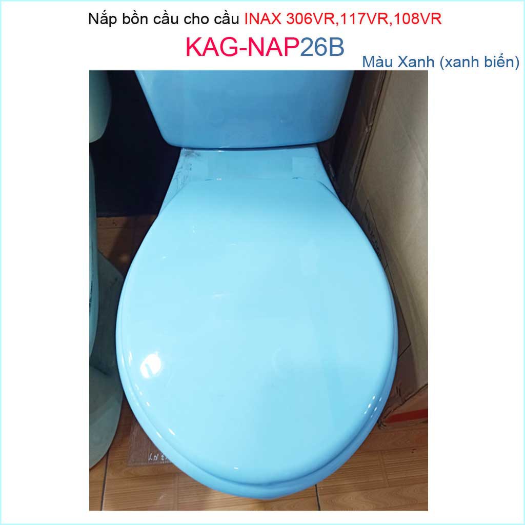 Nắp đậy bồn cầu KAG-NAP26B Inax cho C117-C306-C108, nắp bồn cầu 2 khối nhựa dày xanh biển bóng đẹp