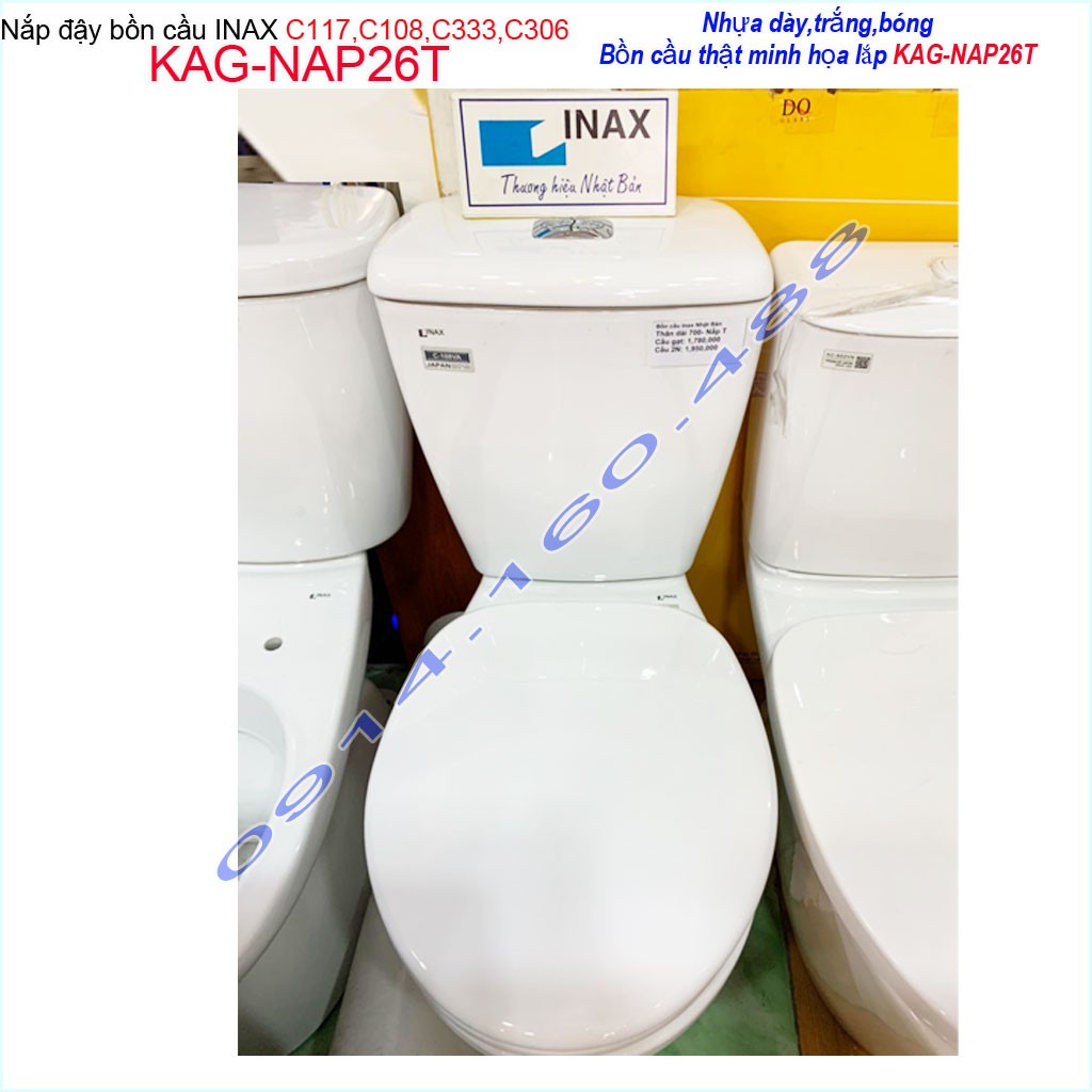 Nắp đậy bồn cầu KAG-NAP26T Inax cho C117, C306, C108, nắp bồn cầu 2 khối nhựa dày trắng bóng đẹp