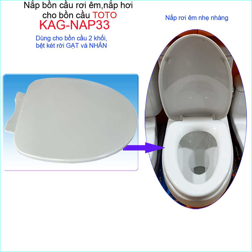 Giới thiệu Nắp cho bàn cầu Toto KAG-NAP33 rơi êm, nắp hơi xí bệt 2 khối C320-C325-C351 nhựa trắng dày-sáng bóng