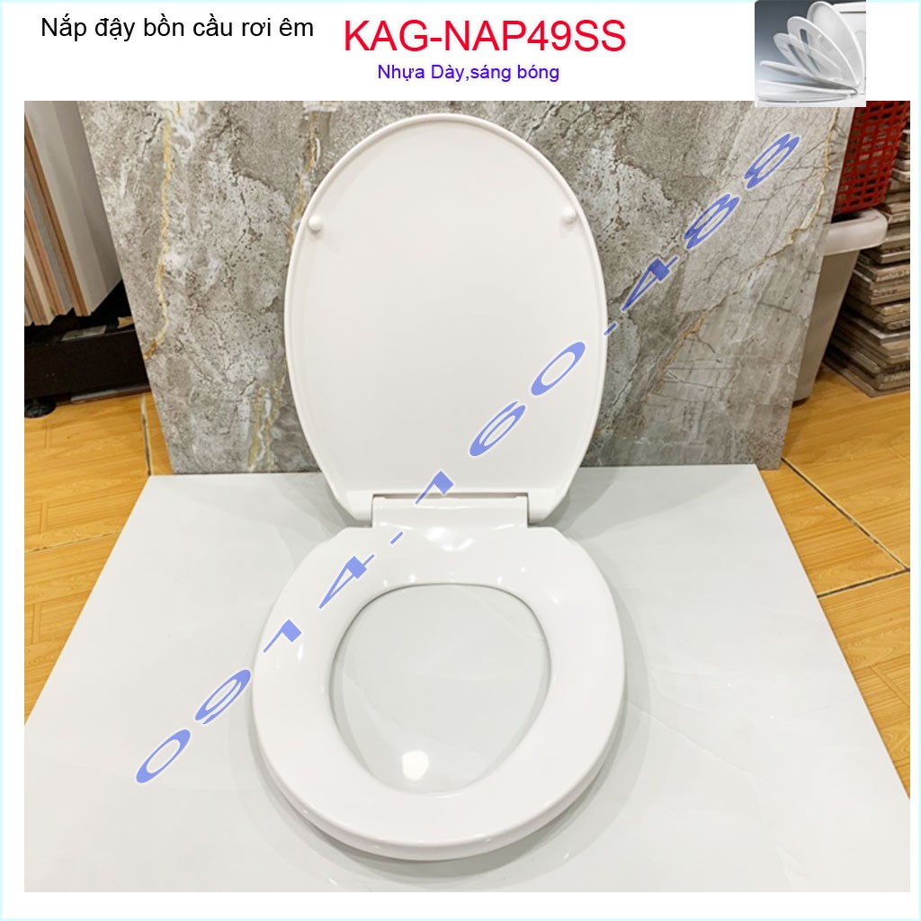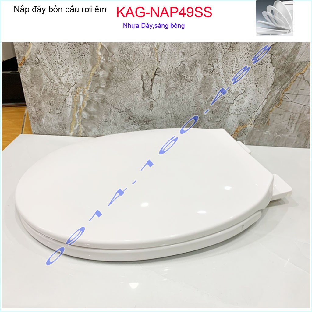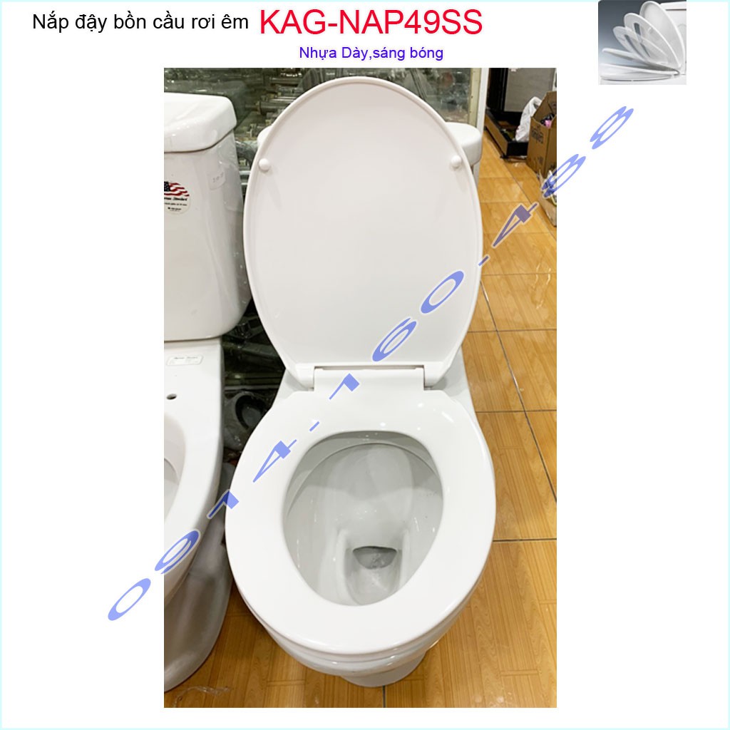 Nắp đậy bồn cầu rơi êm KAG-NAP49SS, nắp cho bàn cầu American VF2013-VF3013-VF4013Kích thước nắp đậy: dài 44cmx rộng 36cm ( +- 2 cm) khoảng cách giữa 2 lỗ chốt: 13 - 16cm