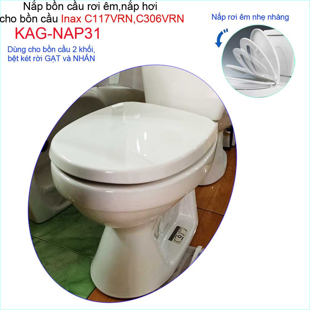 Nắp đậy bồn cầu rơi êm KAG-NAP31, nắp cho bàn cầu Inax C.117VRN,C306VRN, nắp cho cầu Inax