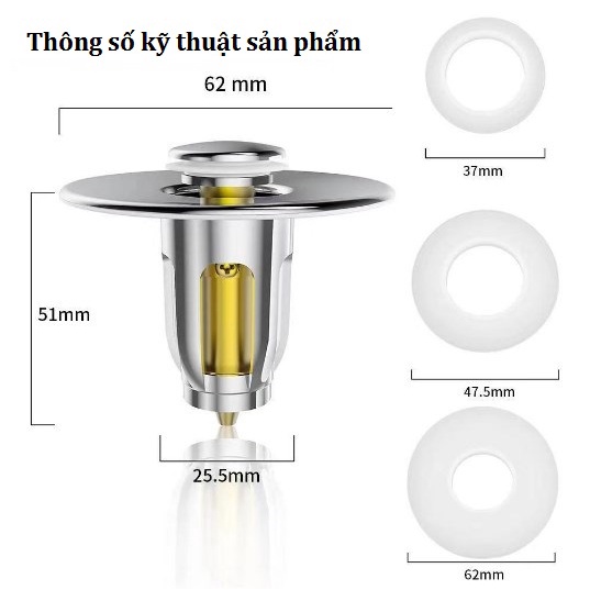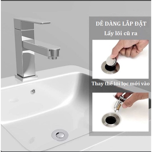 + Lắp đặt dễ dàng, NHẤN để chặn nước hoặc xả nước tiện lợi, kèm bộ lọc rác, tóc.....tránh tắc ống.