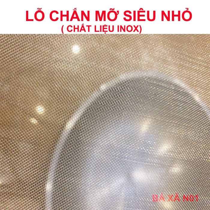 - Vỉ lưới inox, sở dĩ là lưới vì nếu kín như vung thì sẽ bị đọng hơi nước, hơi nước chảy lại xuống chảo sẽ làm bắn mỡ nhiều hơn