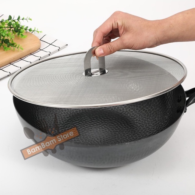Nhà cửa & Đời sống > Dụng cụ nhà bếp > Chảo || Nắp đậy chảo trống văng dầu mỡ inox 3 cỡ cao cấpCòn hàng