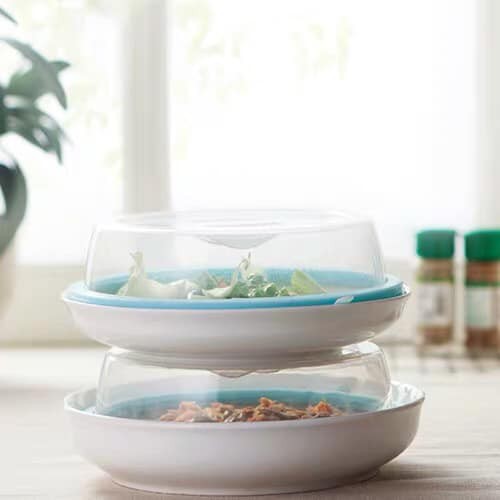 ✅ Đồ ăn, thực phẩm được đậy kín còn xếp chồng lên nhau tiết kiệm diện tích.