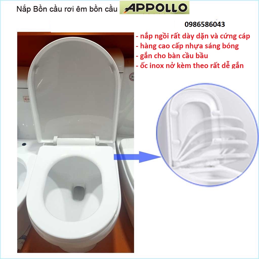 Nắp đậy cho bồn cầu 1 khối Appollo , nắp hơi bồn cầu khối nhựa cao cấp Thailand