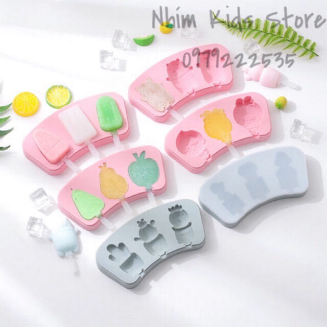 [Có Nắp - Kèm Que] Khuôn silicon làm kem que cho bé