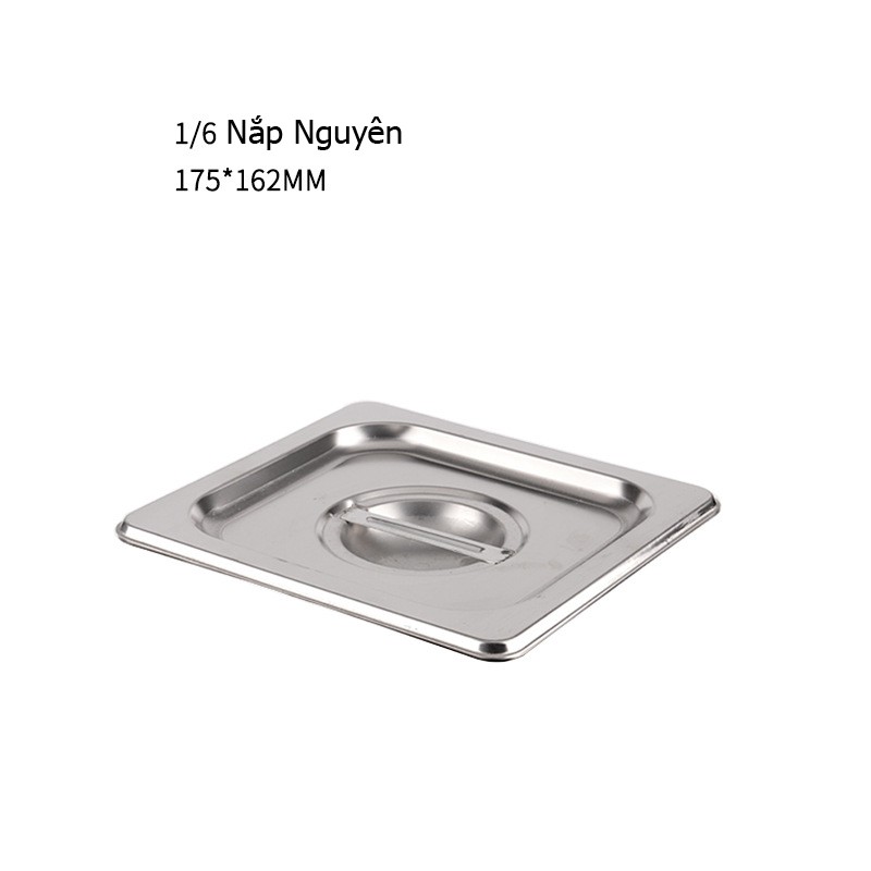Nắp Khay Topping 1/9 1/6 Bằng Inox được dùng để đậy khay topping đựng kem, topping, các loại thực phẩm, các món ăn trong bếp ăn tập thể, nhà hàng.Kích thước: nắp nguyên & nắp khuyết size khay topping 1/9 & 1/6