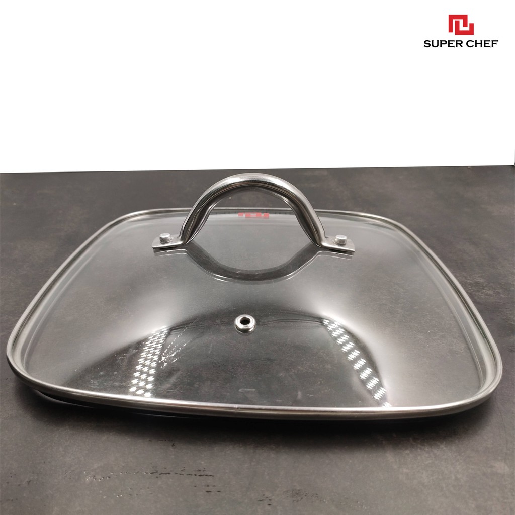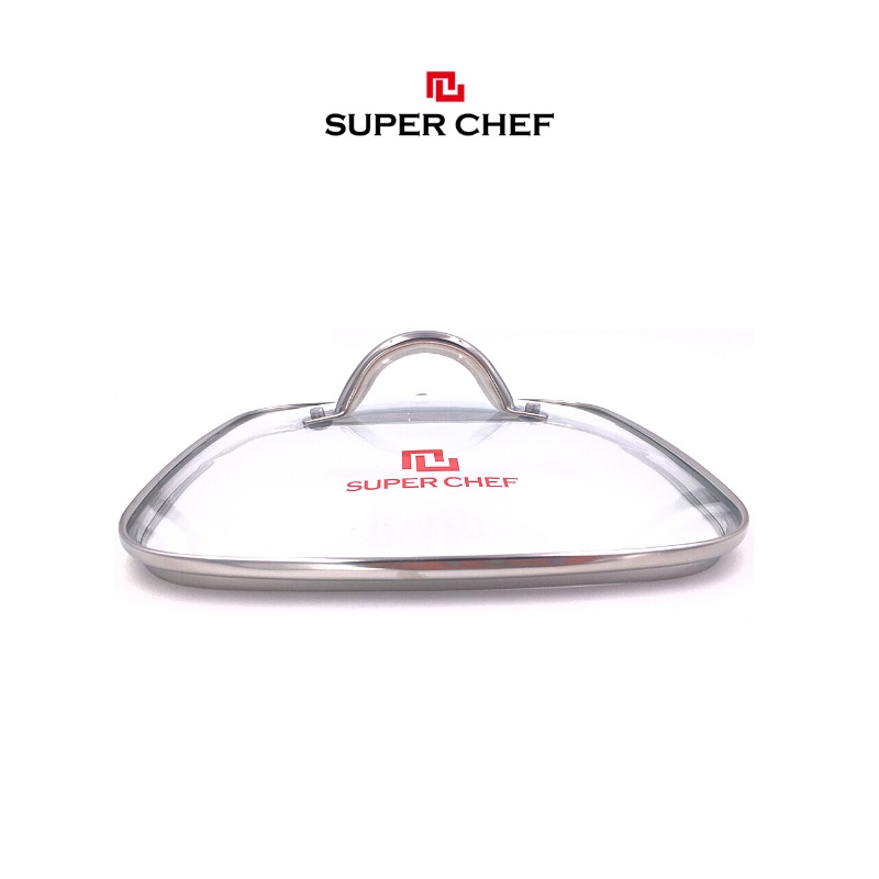 Nắp Kính Cường Lực Super Chef Vành Inox Siêu Bền Bỉ Cho Nồi Chảo Vuông