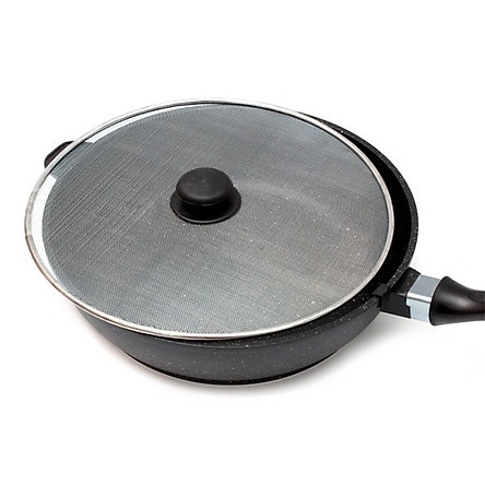 Nắp vung độc đáo này được thiết kế hình tròn, dưới dạng một lớp lưới dày khít có tác dụng ngăn dầu mỡ văng ra ngoài khi bạn chiên, xào, rán các món ăn.