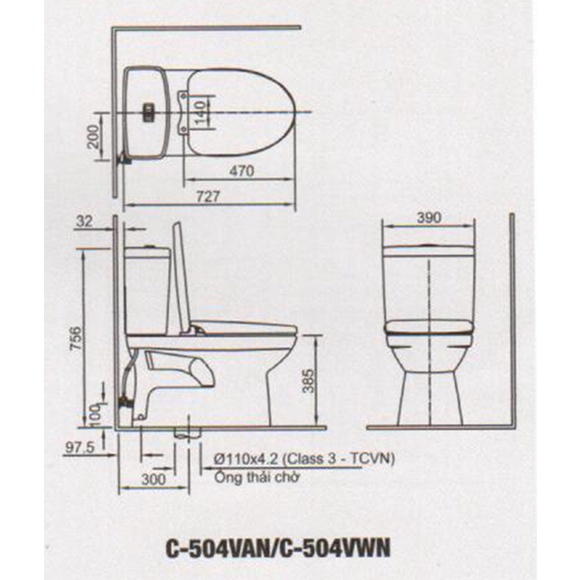 Thay thế vừa cho các dòng bồn cầu Inax 504: 504 VT, 504VR, 504VA