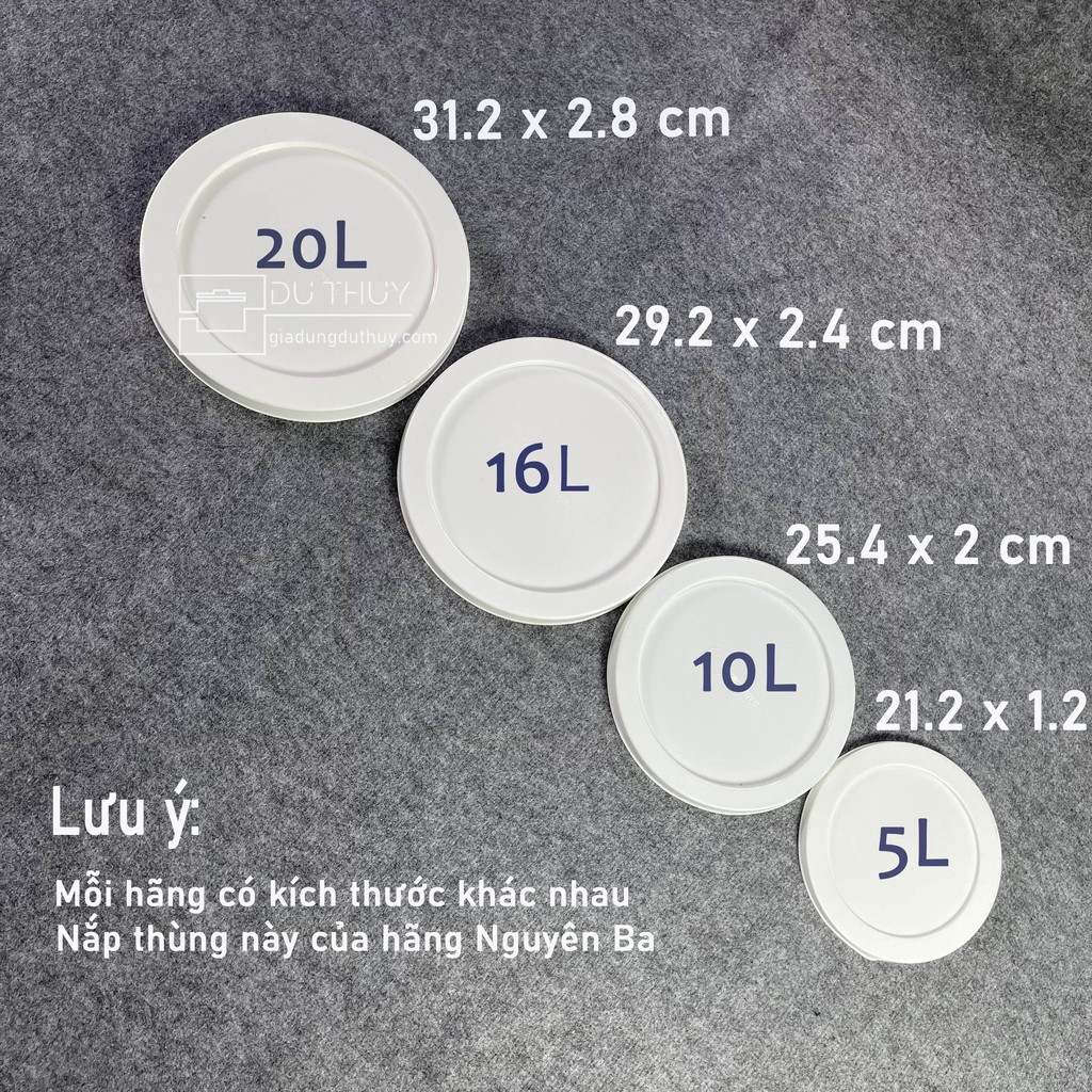 Nhà cửa & Đời sống > Dụng cụ chăm sóc nhà cửa > Chậu, xô & gáo nước || Nắp thùng sơn màu xanh, trắng, vàng với 6 kích thước, nhựa pp chính phẩm, bền sử dụng lâu dài của gia dụng Du ThủyCòn hàng