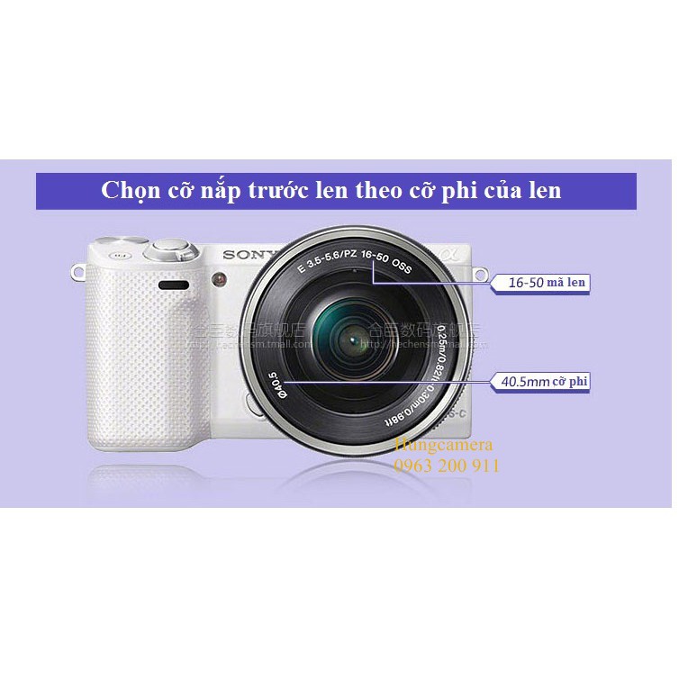 Lưu ý: Chọn nắp trước lens theo cỡ phi trên lens (xem ảnh cuối để biết cách xem cỡ phi của lens)