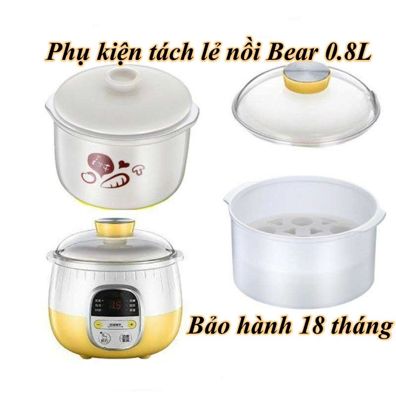 Nắp, xửng hấp, thố sứ, nồi nấu cháo Bear 0.8l - Phụ kiện chính hãng