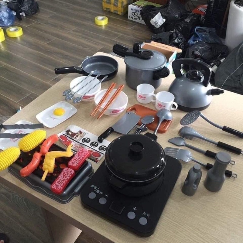 ☘️Bộ đồ chơi nấu ăn này cưng lắm nhé. Các đồ vật như nồi áp suất, ấm nước, bếp được làm y như thật luôn.
