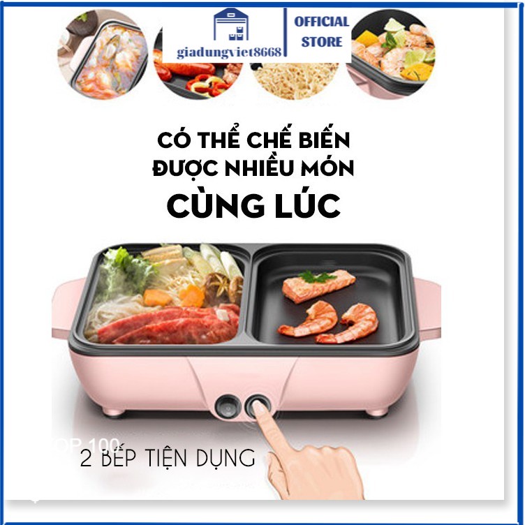 Thiết Bị Điện Gia Dụng > Đồ gia dụng nhà bếp > Nồi nấu đa năng || Nẩu Nướng 2 In 1, Nồi 2 Ngăn Đa Năng Nấu Cơm, Nướng, Xào, Lẩu, Chiên, Chống Dính Đa Năng Chức Năng Mẫu Mới Nhất Hiện NaCòn hàng