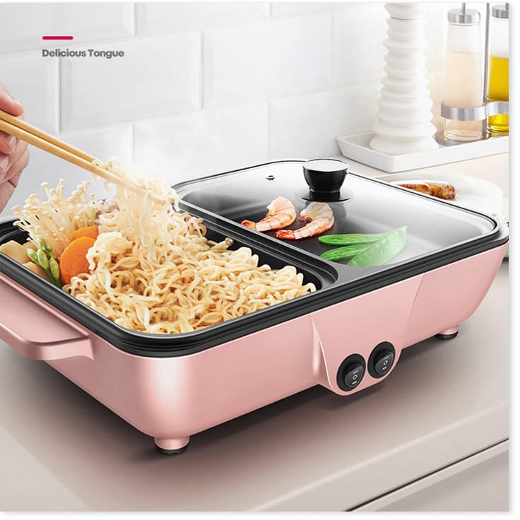 Nẩu Nướng 2 In 1, Nồi 2 Ngăn Đa Năng Nấu Cơm, Nướng, Xào, Lẩu, Chiên, Chống Dính Đa Năng Chức Năng Mẫu Mới Nhất Hiện Na⚡FREESHIP⚡