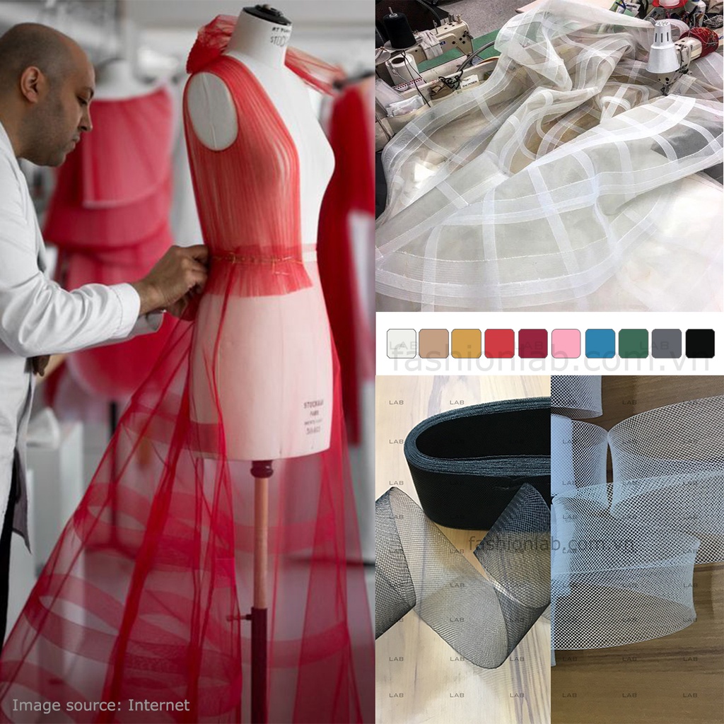 Thông tin sản phẩm:- Nẹp lưới horsehair may viền gấu váy, gia cố tùng váy, tạo cấu trúc phồng xòe