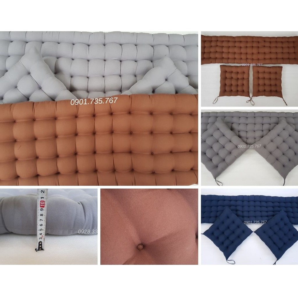 - Bộ Nệm lót ghế 1 dài 2 ngắn Vải Đũi theo kích thước yêu cầu kích thước tiêu chuẩn bao gồm :